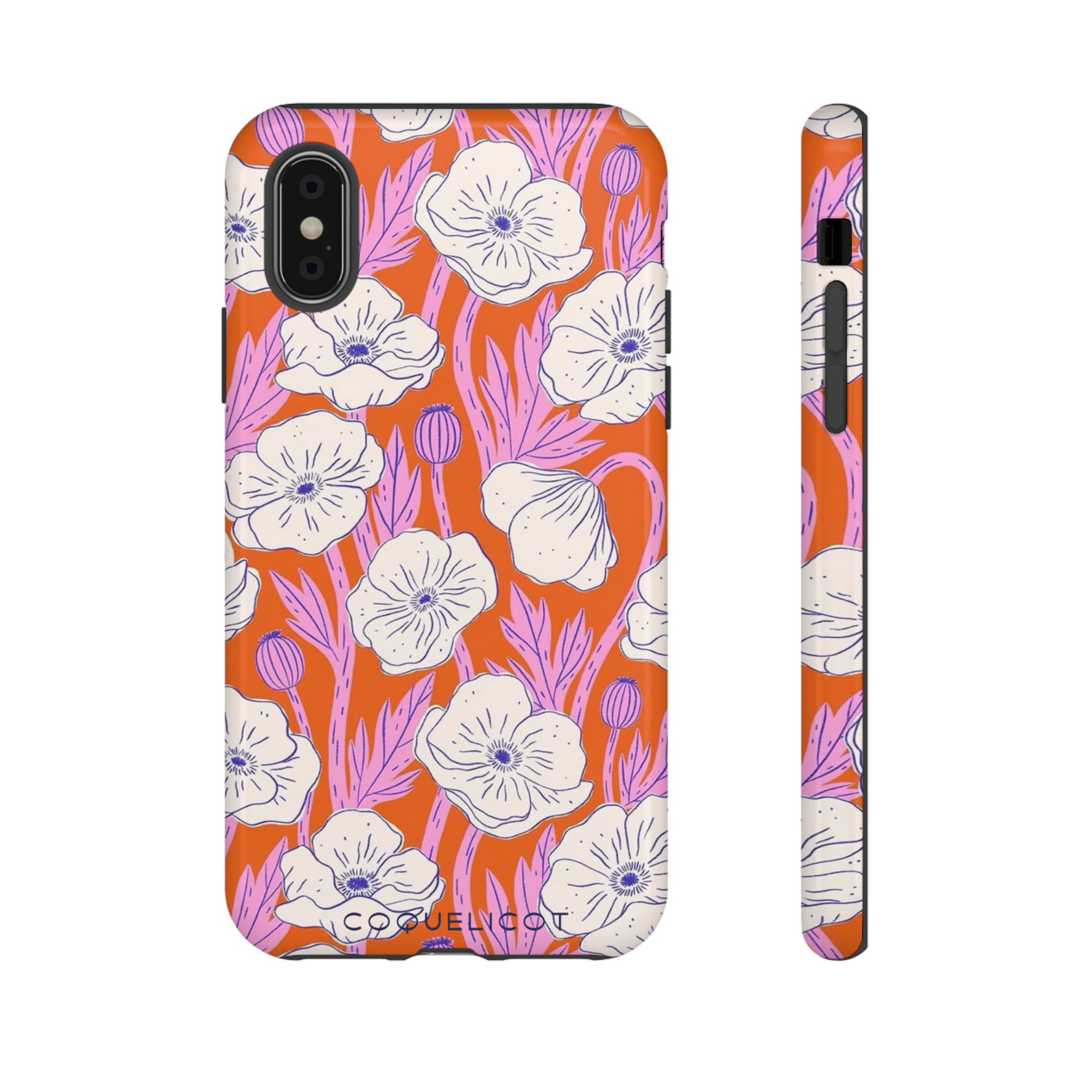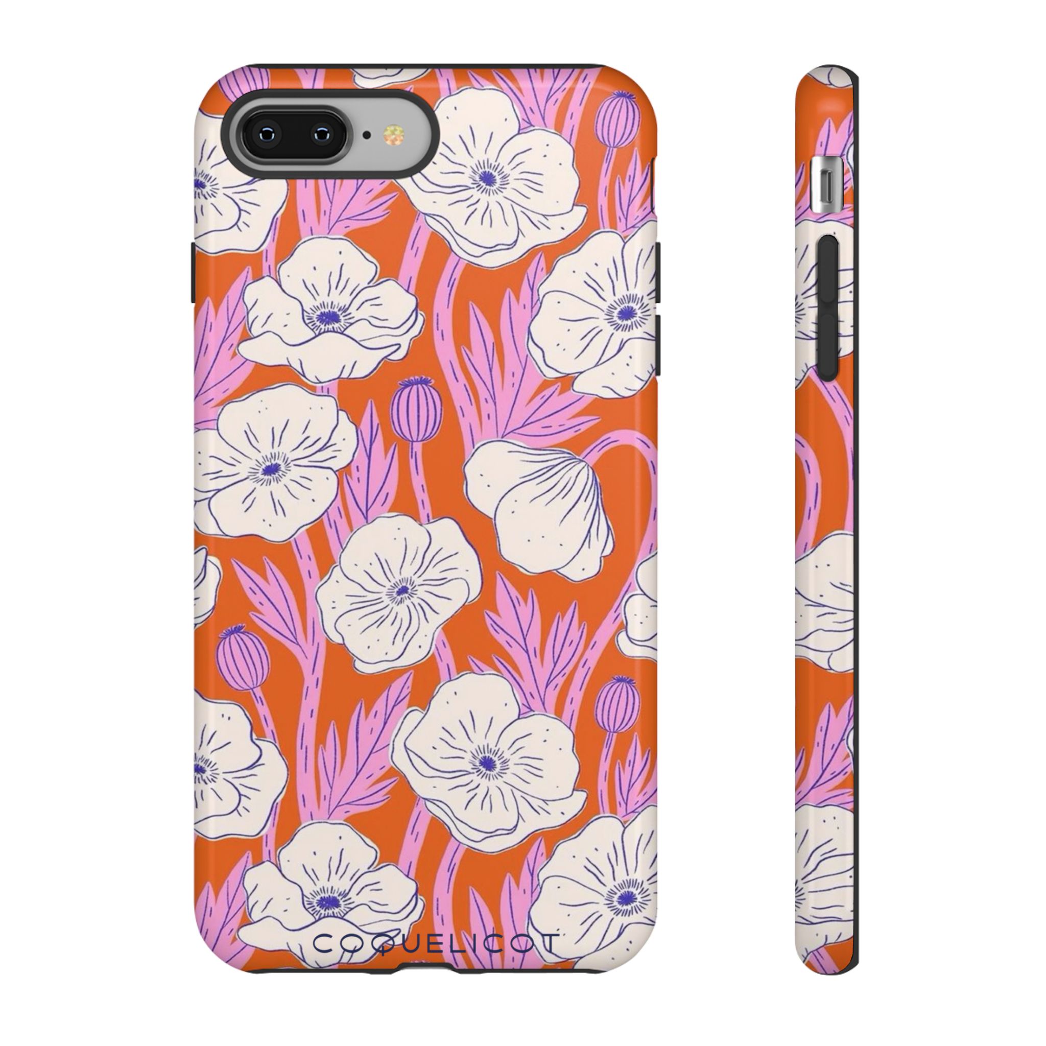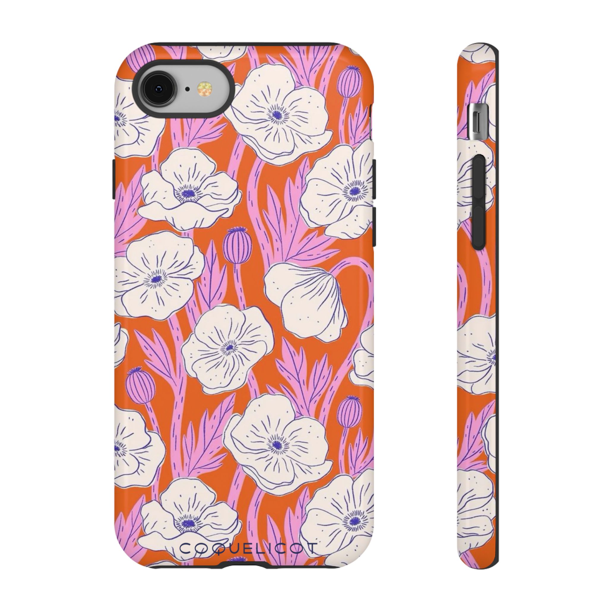 La coque Coquelipop célèbre le coquelicot dans un style pop art audacieux : des pétales blancs sur fond orange vif, inspirés des affiches sérigraphiées des années 60. Protection double couche, finition glossy/matte, et compatibilité avec tous les modèles iPhone (15, 14, 13…). Un accessoire unique pour allier art et technologie.