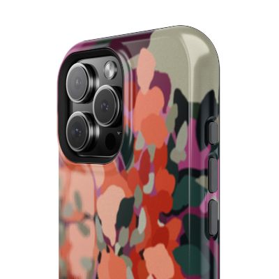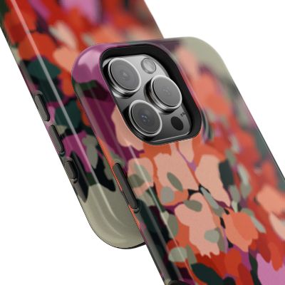 Les teintes — entre rouge, rose, vert et nuances naturelles — s’entremêlent pour créer une composition riche et dynamique. Cette coque iPhone florale évoque un jardin libre, foisonnant et plein de mouvement.