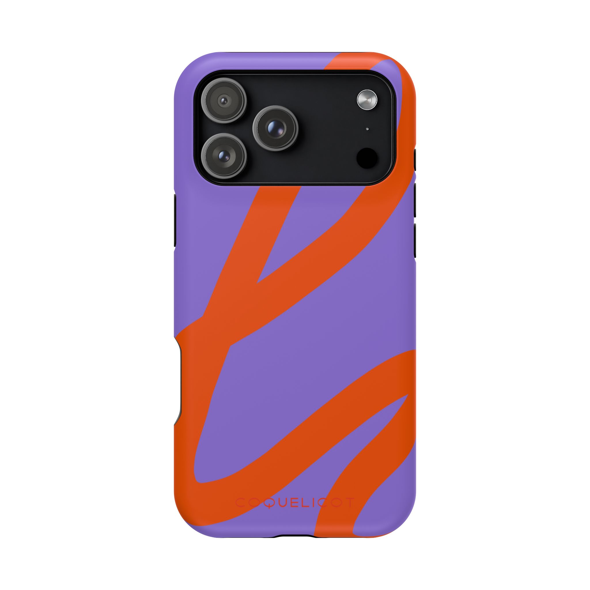 Pulse, est une coque iPhone au design vibrant, inspirée de l’énergie visuelle des années 70. Son contraste violet et orange, sa protection double couche et sa compatibilité MagSafe en font un accessoire audacieux, moderne et fonctionnel.